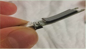 Description: Flash disk submerged into sonicating water bath for 5 minutes. Sonicator applies hypersonic waves that are typically used to shatter DNA strands and cell walls.