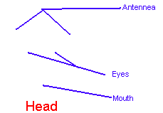 Procedure: The first step is to analyze the exterior of the cricket. With forceps and a magnifying glass, label all the parts on the dorsal side (back side). Repeat with the ventral side (front side) of the cricket. The next step is to remove the appendages (legs). Remove the largest leg, and make an incision across the ovular portion of the leg. Label all the parts in the interior of the leg. The next incision will be a cut starting right below the head, across the ventral side, down the lenght of the body. Label all unique features of the specimen.
